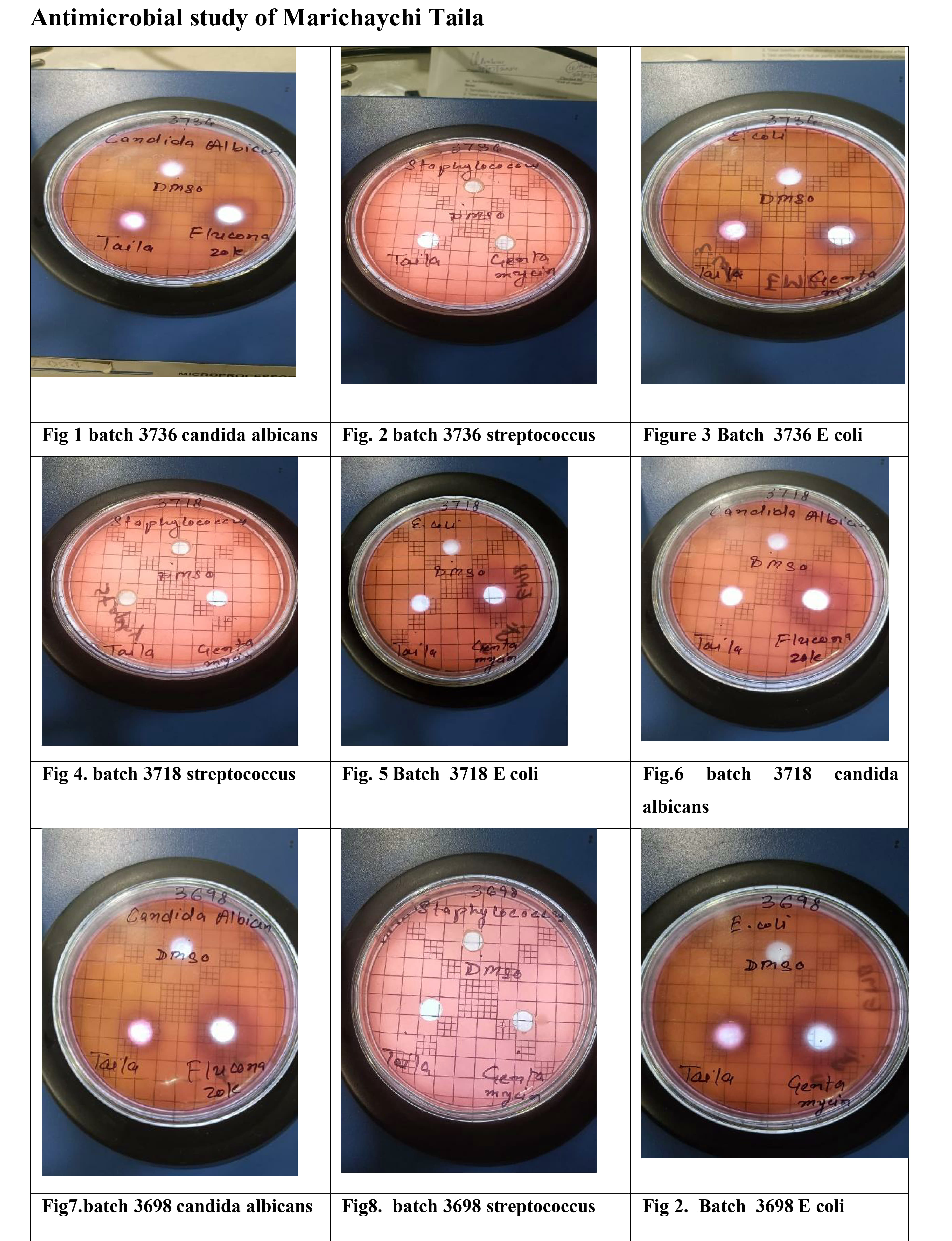 Keywords: Marichyadi Taila, Escherichia coli (Gram-negative bacteria), Staphylococcus aureus (Gram-positive bacteria), and Candida albicans (fungus).